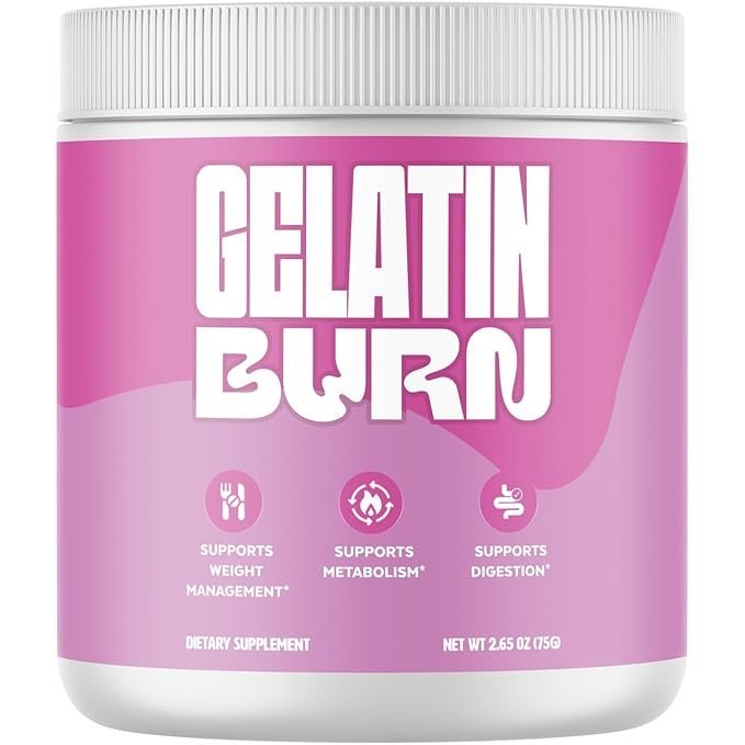 Gelatin Burn is marketed as a metabolism-supporting powder designed to curb appetite, increase energy, and assist with weight control. The formula includes vitamins (B6, B12, D3), chromium, green tea extract, green coffee bean extract, and L-theanine. These ingredients are commonly associated with mild metabolic support, improved focus, and temporary appetite regulation — aligning with the current trend of supplements targeting hormonal balance and glucose response.